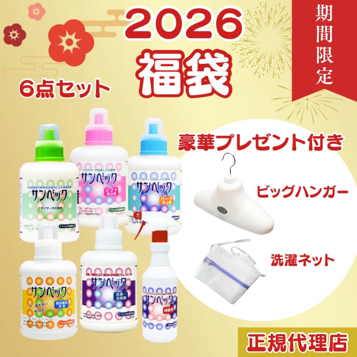 2026 福袋 サンベック 6点セット おしゃれ着洗剤 ダウンジャケット カシミア ウール セーター コート マフラー シルク ニット 洗濯 液体 普段着用洗剤 掃除用洗剤 期間限定 | 洗濯雑貨専門店 Lawash~ローアッシュ~