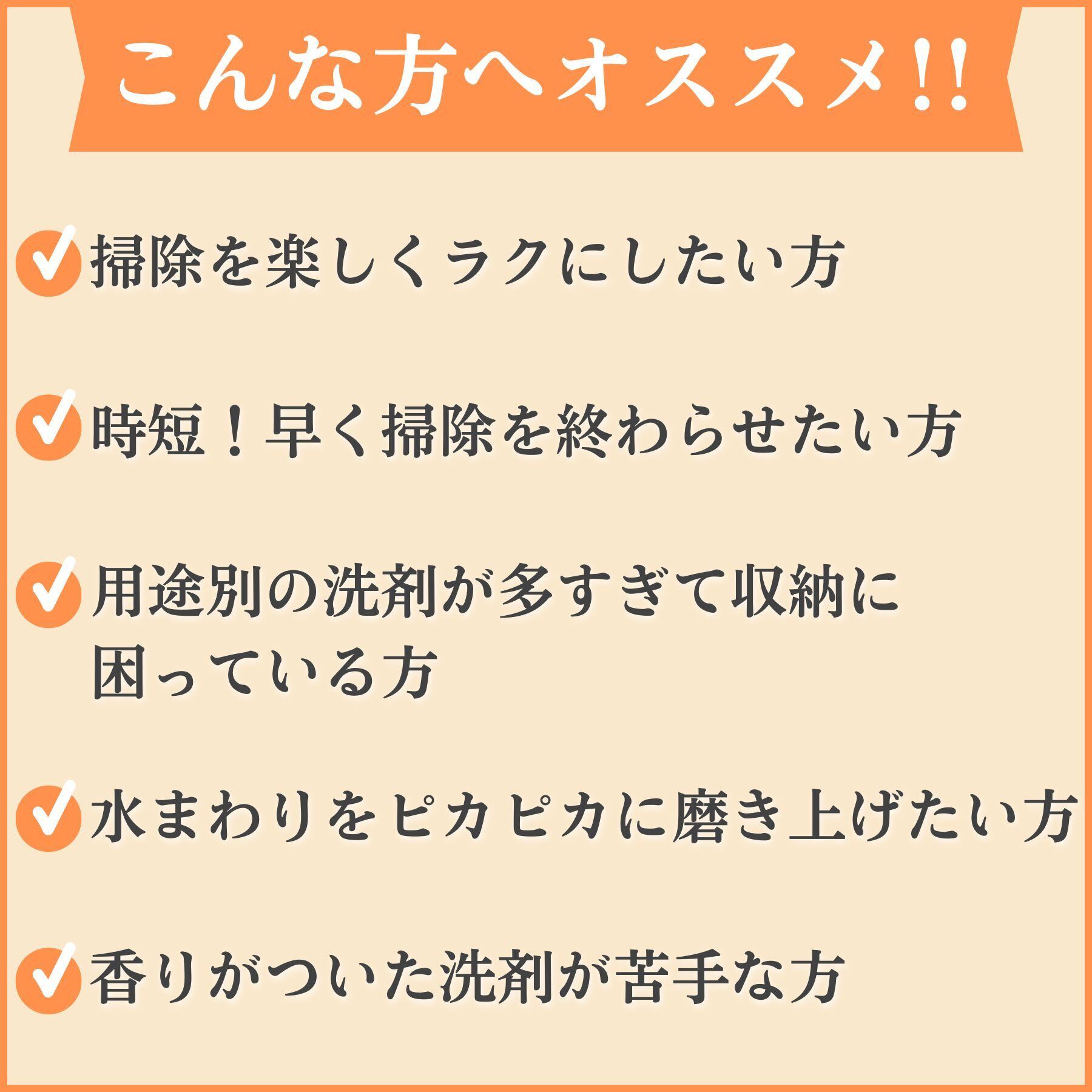 換気扇、レンジの油汚れ、冷蔵庫、浴槽、カーペットなどこれ1本でマルチにお使いいただけます。