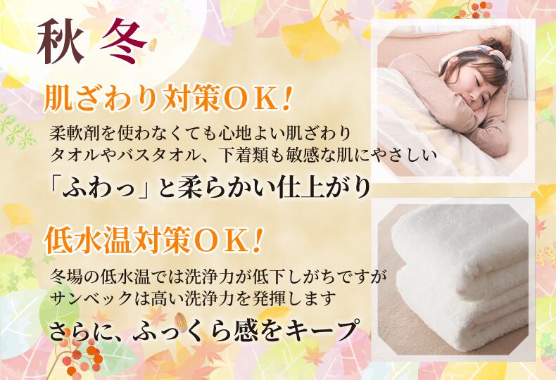 純石けん成分…ダメージを受けた繊維をふんわりしっとりと洗います。